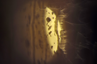 En hel dag og kveld uten internett i huset... ingen tv, ingen blogger å lese, ingen bilder å se på. Bortsett fra mine egne da, men de har jeg sett før. Blir rastløs, kanskje ta noen bilder. Ute er det snart helt mørkt og regner. Så jeg vandrer litt rundt i huset, stopper ved vinduet, som det regner på, hm, det kan jo være interesant. Etter noen bilder av dråpene, så flytter jeg litt på meg, og får inn i lisen lyset fra naboen. Med makro lisen og stor blender, ble det noen kule abstrakte bilder og dråper og lys :)